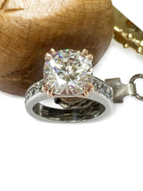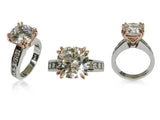 6 Carat Cushion Cut Cubic Zirconia Rose Gold Double Wire Prongs Two tone Engagement Ring- The Lisa RIng