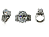 This exquisite engagement ring is showcasing a beautiful AAA high Quality IGI certified 6 carat Oval Cubic Zirconia center stone. It is set in double wire prong setting. The dimensions of the 6 carat ideal cut oval are 14 X 10 mm. The shank has channel set princess cut cubic zirconia stones on the sides. The width of the shank is 8.5mm.