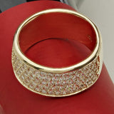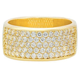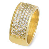 9mm Wedding Band in 5 Rows of Pave Cubic Zirconia 14k Yellow Gold
