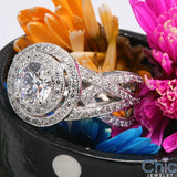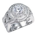 Anniversary 1.25 Ct . Round Center Halo Micro Pave Cubic Zirconia 14K White Gold Ring