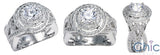 A striking anniversary ring with high polished shank abd AAA high quality round cubic zirconia center stone in prong setting, with high quality small round cut cubic zirconia stones in pave setting on the sides and around the center stone. The width at the top is 14mm.