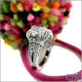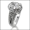 1.25 Oval High Quality Cubic Zirconia Center Halo Pave 14K White Gold Engagement Ring