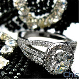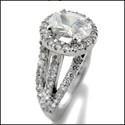 1.5 Oval Cubic Zirconia Center Halo Pave Euro Shank 14K White Gold Cz Ring
