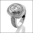Classy 1 carat diamond quality cubic zirconia oval the center stone in bezel, and 1.5 carat pave set round stones on the sides.