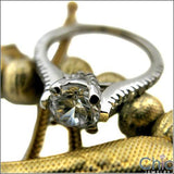 1 Ct Round Center CZ Thin Pave Band Cubic Zirconia Engagement Ring 14K White Gold