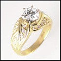 Anniversary 1 Carat Round Cubic Zirconia 14K Yellow Gold Pave Ring