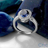 Anniversary 2.5 Oval Sapphire Halo Cubic Zirconia Cz Ring