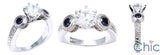 A beautiful anniversary ring with high polishd solid shank, with AAA high quality round cubic zirconia center stone, with sapphire color round cut cubic zirconias on the sides in bezel, engraved heavy shank.