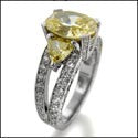 Fancy anniversary ring set with AAA high quality canary oval center and trillions on the sides. Split shank is covered with pave set stones.
