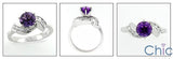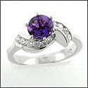 A beautiful ring with high polished shank with a high quality round Amethyst cubic zirconia in a six-prong tiffany setting and round cubic zirconias set in unique cannels on the side.