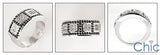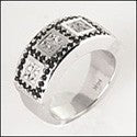 A unique design with a high polished solid shank and combination of high quality black and white cubic zirconias in invisible setting.