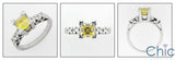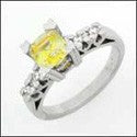 A alluring engagement ring with a high polished solid shank and a high quality canary asscher cut cubic zirconias center stone in three-wire-prong setting along with round diamond cubic zirconias in channel-prong setting on the sides.
