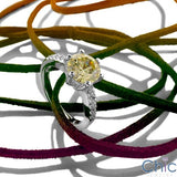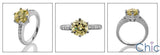Eye-catching ring with an AAA high quality light canary center set in prongs. Pave set small round stones on the sides