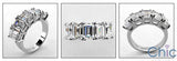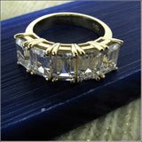 A beautiful anniversary ring with high polished solid shank, with high quality emerald cut cubic zirconia center stone prong setting.