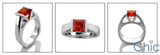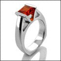 An elegant solitare ring with a high polished solid shank and a orange princess cut cubic zirconia in channel setting.