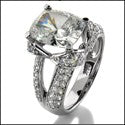 3 carat AAA high quality oval brilliant cut center in prong setting. Split shank. Pave set stones on the sides.