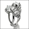 Oval and Pear Cubic Zirconia Halo Pave Anniversary 14k White Gold Cz Ring