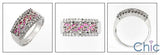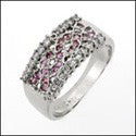 A beautiful wedding band with a solid high polished shank and high quality pink diamond cubic zirconias in pave setting and white diamond cubic zirconias in prong setting.