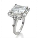 Breathtaking fancy ring, set with 3.0 AAA high quality princess cut center stone, surrounded by baguette and round stones. Sides have tapered baguettes in channel setting on the band.