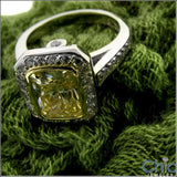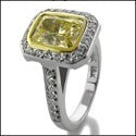 Canary Radiant Cut Cubic Zirconia 2 Carat Bezel Ring in Halo 14k Gold