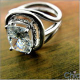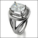 Marvelous ring set with AAA high quality cubic zirconia radiant cushion cut in prong setting. Sides have one row of small round stones set in pave