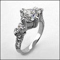 A gorgeous engagement ring a with high polished solid shank, a high quality round cubic zirconia center stone with triangle and round cubic zirconias on the sides in prong and pave setting.