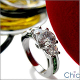 Anniversary Round 3 Stone emerald green Princess Cubic Zirconia Cz Ring