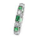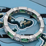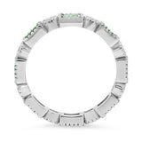 Art Deco Style Eternity Band with Emerald Color and Clear Diamond Cubic Zirconia 14k White Gold