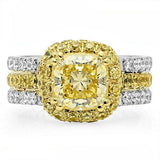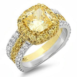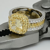 Canary Cushion Cut Two Tone Cubic Zirconia Cz Ring