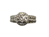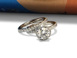 Cubic zirconia 1 carat Center Hidden Halo Pave set ring with matching band 14K