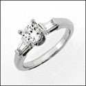 Engagement 0.75 Ct Round Tapered Baguettes Cubic Zirconia Cz Ring
