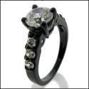 Engagement 1.25 Round Cubic Zirconia in Black Rhodium Solid 14K Gold Ring