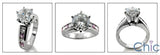Classy engagement ring set with AAA quality round stones in tiffany style 6 prong setting & channel set pink and diamond color CZ stones on the band.