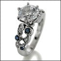 Engagement 1.5 Round center Sapphire Bezels Ct Pave Cubic Zirconia Cz Ring