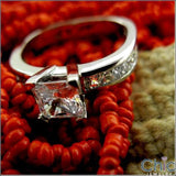 1 Ct Princess CZ Channel Cubic Zirconia Engagement Euro Shank 14K White Gold Ring