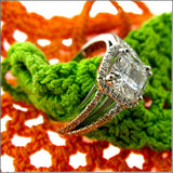 Engagement 1 Ct Radiant Cushion Pave halo Split Shank Cubic Zirconia 14K White Gold Ring