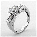 A beautiful engagement ring with high polished solid shank, a high quality cubic zirconia round center stone, and princess cut cubic zirconia in channel.