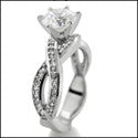 Elegant engagement ring featuring AAA high quality round stone in 6 prong setting, the shank is designed as eternity symbol, it is also covered with small pave set stones.