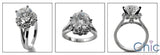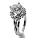 Elegant engagement ring set with AAA high quality round cubic zirconia in high set 4 prongs surrounded by round smaller stones in shared prongs. Split shank.Burnished stones on the base of the ring.