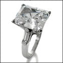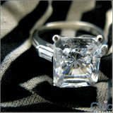 A superb ring with AAA high quality Radiant cut high quality cubic zirconia in a prong setting with straight baguettes cubic zirconias in channel