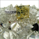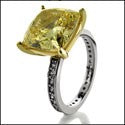 Breathtaking fancy two tone engagement ring, set with AAA high quality canary color cushion cut CZ in prong setting.Eternity band has round stones in pave setting.