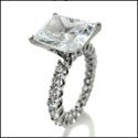 Eye catching engagement ring set with high quality AAA cubic zirconia Radiant cushion cut in 4 prong's Tiffany setting. The shank has eternity style set round stones in prong setting.