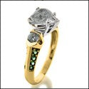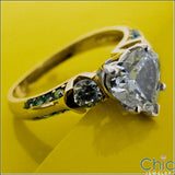 Engagement Heart Shaped 1.5 Center Emerald Pave Cubic Zirconia Cz Ring