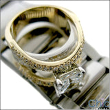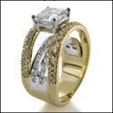 Cubic Zirocnia Engagement Ring Princess 1.5 Ct Center Two Tone 14K Gold Channel Pave Shank