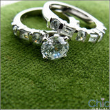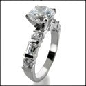 Elegant engagement ring set with AAA high quality round center stone in prong setting and baguettes and small round stones in channel