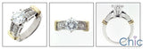A beautiful two tone engagement ring with high polished shank and a round high quality round cubic zirconias in Tiffany style setting and round and princess cut high quality cubic zirconias on the sides in channel and pave setting.