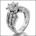 A dazzling engagement ring with high polish solid heavy shank, with round cut AAA quality cubic zirconia center stone set in 6 prong tiffany setting, and with combination of round and princess cut high quality cubic zirconia stones set in channel and pave settings on the sides.
