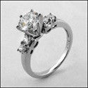 A speCt acular engagement ring with high polished solid shank, with a high quality center cubic zirconia in Tiffany style setting, and round side cubic zirconias set in prong.