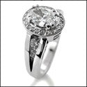 Exquisite ring, topped with 1.25 AAA high quality oval center stone in double-wired prong setting, surrounded with pave set small round stones. Split shank has channel set round stones. Gallery underneath.