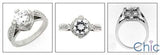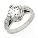 A striking ring with high polished solid shank and a high quality round dimaond cubic zirconia center stone in prong setting and round diamond cubic zirconias in pave setting on the sides.